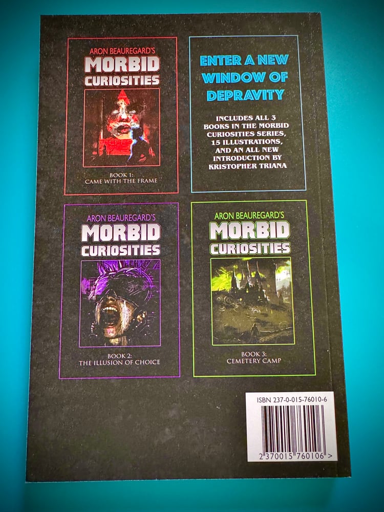 This AB Horror exclusive collector’s edition includes all 3 books in the Morbid Curiosities series and a foreward by horror legend Kristopher Triana.